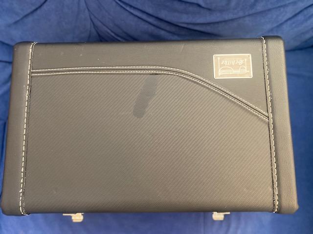 mit Koffer und Zubehör.